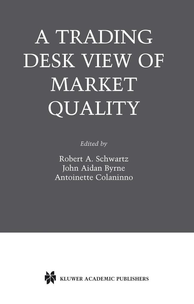 This book is based on A Trading Desk's View of Market Quality, a conference hosted by the Zicklin School of Business on April 30, 2002. The text includes the edited transcripts of each panel as well as separate presentations by two distinguished industry officials, Joel Steinmetz, who at the time was Senior Vice President, Equities, Instinet Corporation, and Laura Unger, formerly Acting Chairperson and Commissioner of the U. S. Securities and Exchange Commission. This book is not simply a historical record of the conference. It is also an exposition of the complex issues raised by the industry experts and speakers in attendance. Therefore, we introduced new material from foll- up interviews with many of the panelists so that the final result would be a more valuable document. Our intention was to examine the discussions with a critical eye, then modify or expand various sections to reflect contemporary conditions. In addition, we have included a paper by Ozenbas, Schwartz and Wood (see Chapter 8, page 151) that provides further analysis on the connection between market quality and intra-day 1 volatility that was noted several times during the conference. During the production process, we worked with the panelists, and took pains not to put words in their mouths. They have all approved the final draft of the manuscript, and we thank them for their assistance and patience.