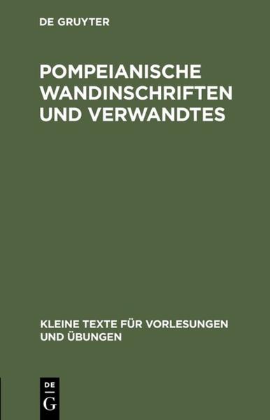 Frontmatter -- POMPEIANISCHE WANDINSCHRIFTEN UND VERWANDTES -- I. NAMENVERZEICHNIS -- II. WORTVERZEICHNIS -- III. SPRACHLICHES -- IV. INHALTSVERZEICHNIS -- Backmatter