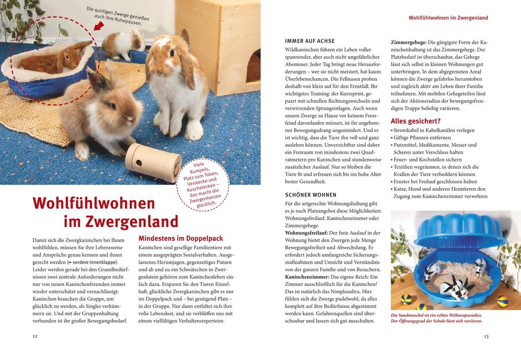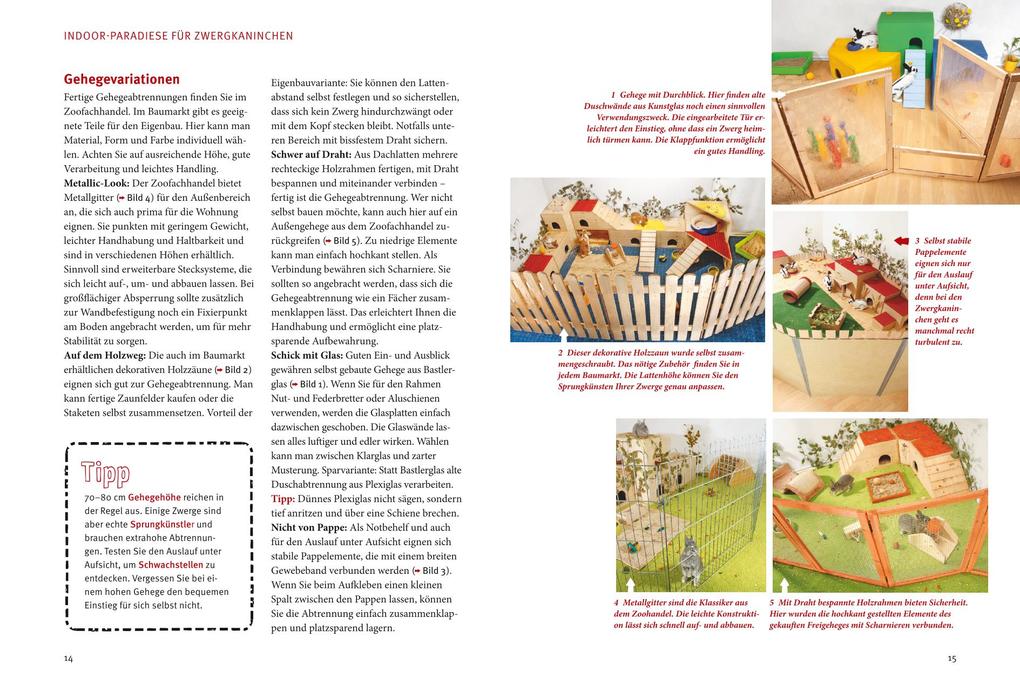 Flinke Hoppler brauchen Bewegungsfreiheit: Die munteren Zwergkaninchen rennen und springen für ihr Leben gern. Grundlage für ein zufriedenes Kaninchenleben ist daher ein abwechslungsreich eingerichtetes Gehege, das den Tieren neben ausreichend Platz auch noch Möglichkeiten zum Buddeln und sich Verstecken bietet. Für die Innenhaltung stellt das Buch ein cleveres Modulsystem, einen Etagenbau für beengte Verhältnisse und multifunktionelles Mobiliar vor und für die Außenhaltung viele pfiffige Einrichtungsideen. Das Zubehör und die Bauten gibt es entweder fertig zu kaufen oder sie lassen sich dank der verständlichen Anleitungen leicht selbst herstellen. Zahlreiche praxiserprobte Solo-, Futter- und Intelligenzspiele sorgen dafür, dass bei Ihren Zwergen garantiert keine Langeweile mehr aufkommt. Und schließlich zeigt ein eigener Abschnitt, wie zwischen Halter und Kaninchen das nötige Vertrauen entsteht, so dass beide viel Freude an gemeinsamen Spielen wie Hürdenspringen und Slalomlauf haben.
