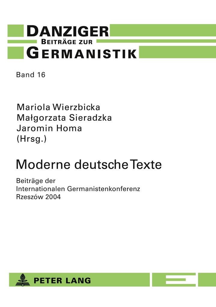 von Zdzis aw Wawrzyniak Christiane Thim-Mabrey: «Nachrichten» im «Tagesschau-Newsletter». Beobachtungen zur Fortentwicklung einer Textsorte Zenon Weigt: Das Präzisieren in deutschen und polnischen normativen Texten Mariola Wierzbicka: Zeitstufenbezug und Tempuskombination in