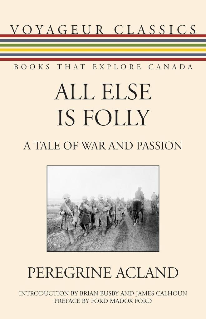 Peregrine Acland's novel All Else Is Folly is an irreplaceable depiction of the Canadian experience in the First World War. More than just a devastating portrayal of the terrors and hardships of trench warfare, the novel is also a profound meditation on the nature of man, one that draws on both the Nietzschean notion of man as warrior and Havelock Ellis's idea of man as lover. Subtitled "a tale of war and passion," the novel was something of a bestseller in its time and drew significant critical praise. Canadian Prime Minister Sir Robert Borden remarked: "No more vivid picture has been painted of what war meant to the average soldier."