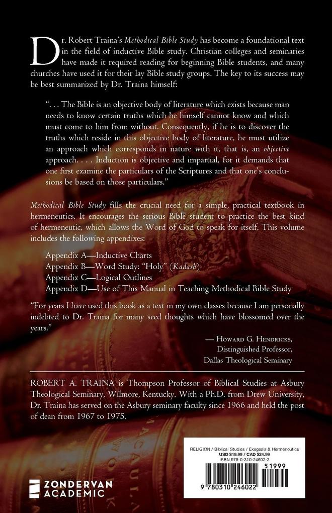 Inductive study compares related Bible texts in order to let the Bible interpret itself, rather than approaching Scripture with predetermined notions of what it will say. Dr. Traina's Methodical Bible Study was not intended to be the last word in inductive Bible study; but since its first publication in 1952, it has become a foundational text in this field. Christian colleges and seminaries have made it required reading for beginning Bible students, while many churches have used it for their lay Bible study groups. Dr. Traina summarizes its success in this comment: "If the truths of the Bible already resided in man, there would be no need for the Bible and this manual would be superfluous. But the fact is the Bible is an objective body of literature which exists because man needs to know certain truths which he himself cannot know. There are two main approaches open to the Bible student. One is deduction, which begins with generalizations and moves for their support to the particulars. By its very nature deduction tends to be subjective and prejudicial. Its opposite, induction, is objective and impartial; for it demands that one first examine the particulars of the Scriptures and that one's conclusions be based on those particulars. Such an approach is sound because, being objective, it corresponds to the objective nature of the Scriptures." This book fills the need for a simple, practical textbook in hermeneutics. It encourages the serious Bible student to practice the best kind of hermeneutic, which allows the Word of God to speak for itself.