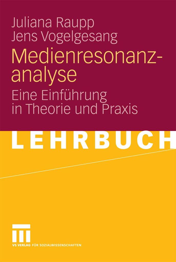 Theorie der Medienresonanzanalyse. - Erkenntniszusammenhang: Warum Medienresonanzanalysen wichtig sind. - Forschungskontext: Medienresonanzanalysen in der Kommunikationswissenschaft. - Anwendungskontext: Medienresonanzanalysen in der PR-Evaluation. - Praxis der Medienresonanzanalyse. - Forschungstand, Forschungsfragen und Begriffsdefinitionen. - Untersuchungsanlage. - Grundgesamtheit und Stichprobenverfahren. - Untersuchungsinstrument. - Feldphase. - Ergebnisse. - Bilanz der Beispielstudie.