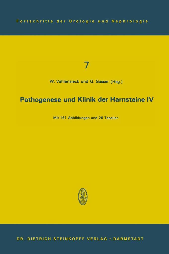 1. Problematik der Harnsteingruppierung.- 2. Datensammlung und Vorschläge zur standardisierten Harnsteinanalyse.- 3. Vergleichende Prüfung einiger Farbreaktionen für Cystin auf ihre Brauchbarkeit für die Analyse von Harnkonkrementen.- Diskussion zu den Vorträgen 1-3 (mit 1 Tab.).- 4. Harnsteinwachstum in Vitro.- 5. Rasterelektronenmikroskopie von Harnsteinen.- Diskussion zu den Vorträgen 4-5.- 6. Eine verbesserte Methode zur Bestimmung von Diphosphat im Urin.- 7. Das System Calcium-Oxalat-Wasser bei 38°C.- 8. Die Elektrolytausscheidung im Urin bei Harnsteinpatienten unter Standarddiät.- 9. Untersuchung zur Harnsteinbildung nach Persorption.- 10. Die Bestimmung von Thyroxin (T4) im Urin bei Nephrolithiasis.- Diskussion zu den Vorträgen 6-10.- 11. Erhöhung des Harnsäurespiegels im Serum und Urin der Ratte nach portocavalem Shunt.- 12. Harnsäureuntersuchungen im Serum und Urin. Ein Vergleich bei Harnsäure- und Oxalatsteinbildern.- 13. Die Bedeutung der Harnsäure bei der Calcium-Oxalat-Nephrolithiasis.- Diskussion zu den Vorträgen 11-13.- 14. Metabolismus von steinbildenden Substanzen und Hemmkörperaktivität im Urin bei Calciumnephrolithiasis.- 15. Zur Pathophysiologie und Therapie der Hypercalciurie bei rezidivierenden Oxalatsteinen.- 16. Veränderungen der Calciumausscheidung bei Patienten mit idiopathischer Hypercalciurie unter Calcitoningabe.- 17. Die Behandlung der Hypercalciurie mit Zellulosephosphat.- 18. Idiopathic Hypercalciuna-Effect of Treatment upon Urinary Calcium and Oxalate.- Diskussion zu den Vorträgen 14-18.- 19. Biochemische Aspekte der Succinimid-Vitamin-B6-Oxalat-Steinprophylaxe.- 20. Ergebnisse der Ethan-Hydroxy-Diphosphonat-Studie nach einjähriger Steinprophylaxe.- Diskussion zu den Vorträgen 19-20.- 21. Besteht beimprimären Hyperparathyreoidismus eine diagnostisch relevante Hyperphosphaturie?.- 22. Der Nachweis von cAMP (cyclischem Adenosinmonophosphat) zur Diagnostik des primären Hyperparathyreoidismus bei Nephrolithiasis.- 23. Cyclisches Adenosinmonophosphat (3?-5?-cAMP) im Urin und Plasma von Harnsteinkranken unter besonderer Berücksichtigung des primären Hyperparathyreoidismus (pHPT).- Diskussion zu den Vorträgen 21-23.- 24. Untersuchungen zum Calciumstoffwechsel beim primären Hyperparathyreoidismus.- 25. Intestinaler Phosphatentzug mittels Aluminiumhydroxid AI(OH)3 bei der Behandlung von Phosphatsteinen.- 26. Die Behandlung der Cystinsteinerkrankung mit Alpha-Mercapto-Propionylglycin.- Diskussion zu den Vorträgen 24-26.- 27. Harnsteine bei Kindern.- 28. Objektivierung und Verlaufskontrolle des Infekts beim Harnstein.- 29. Probleme kurortlicher Heilverfahren bei Harnsteinbildung.- Schlußworte von Prof. Dr. W. Vahlensieck, Bonn und Prof. Dr. G. Gasser, Wien.