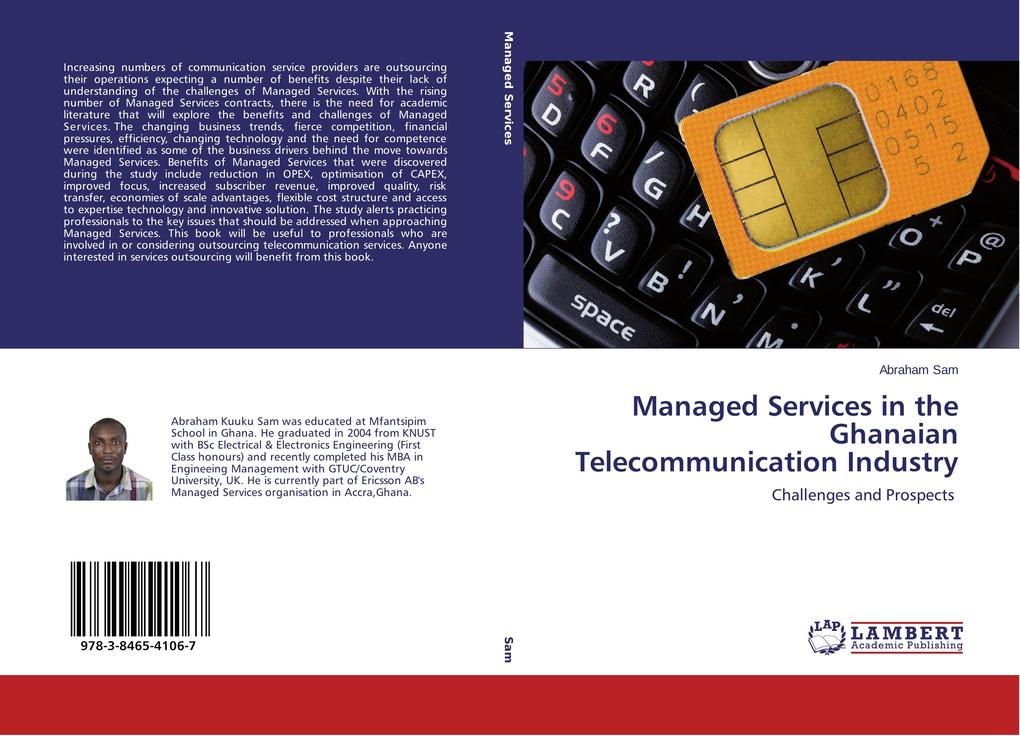 Increasing numbers of communication service providers are outsourcing their operations expecting a number of benefits despite their lack of understanding of the challenges of Managed Services. With the rising number of Managed Services contracts, there is the need for academic literature that will explore the benefits and challenges of Managed Services. The changing business trends, fierce competition, financial pressures, efficiency, changing technology and the need for competence were identified as some of the business drivers behind the move towards Managed Services. Benefits of Managed Services that were discovered during the study include reduction in OPEX, optimisation of CAPEX, improved focus, increased subscriber revenue, improved quality, risk transfer, economies of scale advantages, flexible cost structure and access to expertise technology and innovative solution. The study alerts practicing professionals to the key issues that should be addressed when approaching Managed Services. This book will be useful to professionals who are involved in or considering outsourcing telecommunication services. Anyone interested in services outsourcing will benefit from this book.