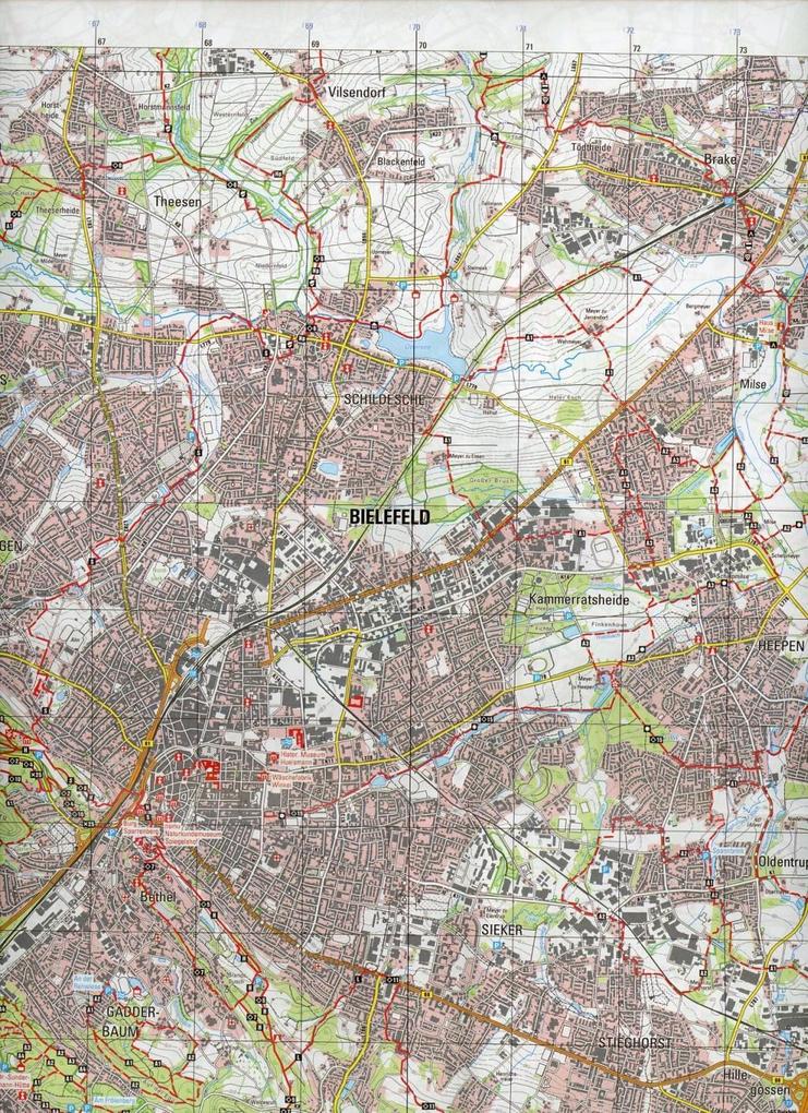 Wanderkarte Bielefeld, Gütersloh, Lippstadt 1:35. 000 auf Grundlage der amtlichen topographischen Geobasisdaten des Landes NRW und dem Freizeitkataster NRW. Topographische Karte mit Wanderwegen und Freizeitinformationen. In Plastikhülle mit aufgedrucktem Planzeiger