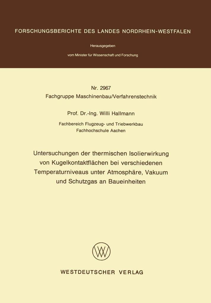 Inhaltsangabe. - 1. Einleitung. - 2. Theoretische Grundlagen. - 3. Thermische Isolierwirkung über Kugelkontaktflächen an Platteneinheiten im Normaltemperaturbereich bei ca. 90° C. - 4. Thermische Isolierwirkung über Kugelkontaktflächen an Platteneinheiten im Hochtemperaturbereich bei ca. 400° C. - 5. Thermische Isolierwirkung über Kugelkontaktflächen an Platteneinheiten im Tieftemperaturbereich bei ca. 190° C. - 6. Thermische Isolierwirkung über Kugelkontaktflächen an zylindrischen Baueinheiten bei verschiedenen Temperaturniveaus und Umgebungsbedingungen. - 7. Literaturhinweise. - 8. Abbildungen und Tabellen. - 9. Anhang: Stoff- und Materialdaten.