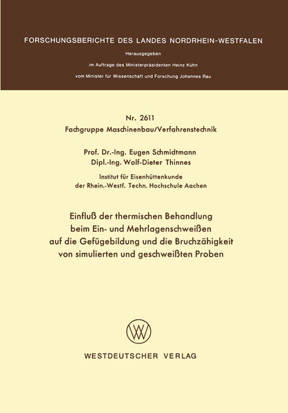 Das Umwandlungsverhalten der Stahle in der WarmeeinfluBzone bedingt beim SchweiBen eine Veranderung der mechanischen Eigenschaften des Grundwerkstoffs. Es wurde das Umwandlungs verhalten von drei mikrolegierten Feinkornbaustahlen, einem perlitfreien thermomechanisch behandelten MnMoNb-Baustahl, dem Stahl St E 47 und dem Stahl St 52-3 unter schweiBpraxis nahen Austenitisierungsbedingungen aufgestellt. Dazu war die Kenntnis der thermischen Vorgange in der WEZ n6tig, welche anhand von SchweiBtemperaturzyklen dargestellt werden. Das Umwandlungsverhalten der Stahle wird fUr die Grobkornzone 0 0 (1350 e Spitzentemperatur) und die Feinkornzone (1000 e) in SchweiB-ZTU- und KUhlzeit-Temperatur-Umwandlungsschau bildern angegeben. Die Umwandlungsfahigkeit der Stahle in 0 0 der gesamten WEZ (Bereich mit 1000 e - l400 e Maximaltem peratur) wird durch Spitzentemperatur-AbkUhlzeit-Diagramme dargestellt. Die Ergebnisse zeigen, daB alle mikrolegierten Versuchsstah le in der WEZ beim SchweiBen mit kleinen und mittleren warme einbringen d. h. kurzen AbkUhlzeiten insbesondere in relativ verformungsfahiges martensitisch-bainitisches GefUge umwan deln. Das verformungsarmste Glied der WarmeeinfluBzone einer SchweiB naht bestimmt die Gesamteigenschaften einer SchweiBverbindung. Beim SchweiBeneiner Lage entsteht in der Oberhitzungszone der WEZ grobkBrniges verformungsarmes GefUge. Durch die weiteren Lagen werden die GrobkorngefUge der WEZ umgek6rnt und ange lassen. Die Abhangigkeit der mechanischen Eigenschaften der Oberhitzungszone von der Lagenzahl wurde deshalb an ein- und mehrlagenschweiBsimulierten Kleinproben der Feinkornbaustahle St E 47, St 52-3, St E 70 und eines thermomechanisch behan delten perlitfreien MnMoNb-Baustahls untersucht. Die Ergebnisse der Kerbschlagzahigkeitsuntersuchungen zeigen, daB sich die durch die erste Lage stark verminderten Verfor mungskennwerte mit zunehmender Lagenzahl verbessern und sogar die der Grundwerkstoffe erreichen k6nnen.