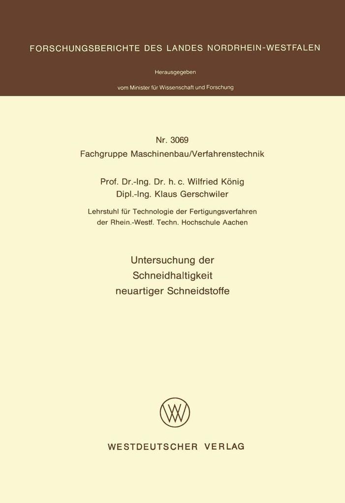 1. Einleitung und Aufgabenstellung. - 2. Zerspanuntersuchungen mit verschieden beschichteten Hartmetallen. - 2. 1 Stand der Erkenntnisse. - 2. 2 Schneidstoffe. - 2. 3 Versuchsbedingungen und Meßverfahren. - 2. 4 Verschleißuntersuchungen beim Drehen des Stahles Ck 53 N. - 2. 5 Verschleißuntersuchungen beim Drehen des Stahles 105 W Cr 6. - 3. Zerspanuntersuchungen mit polykristallinem kubischem Bornitrid. - 3. 1 Stand der Erkenntnisse. - 3. 2 Schneidstoff. - 3. 3 Verschleißuntersuchungen an der Nickelbasislegierung Inconel 718. - 3. 4 Verschleißuntersuchungen an der Kobaltbasislegierung Co Cr 20 W 15 Ni. - 3. 5 Verschleißuntersuchungen an der Titanlegierung Ti Al 6 V 4. - 4. Zerspanuntersuchungen mit polykristallinem Diamant. - 4. 1 Stand der Erkenntnisse. - 4. 2 Werkstoff. - 4. 3 Versuchsdurchführung. - 4. 4 Versuchsergebnisse. - 5. Zusammenfassung. - 6. Literaturverzeichnis.