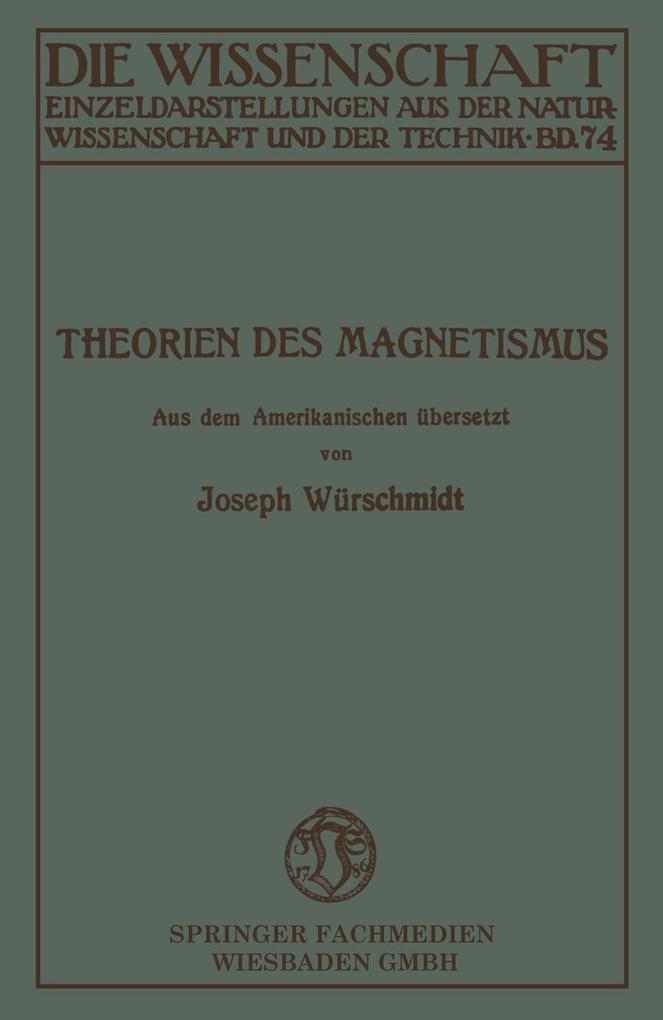 Magnetische Theorien vor der Entdeckung des Elektrons. - Der Fortschritt in der Entwicklung der Theorien des Para- und Diamagnetismus von 1900 bis 1920. - Theorien des Ferromagnetismus. Innere Felder. - Theorien der magnetischen ristalle und das Magneton. - Magnetostriktion und ihre Bedeutung für die magnetischen Theorien. - Theorien der Magnetostriktion. - Das Impuismoment des Elementarmagnets. - Magneto-Optik.