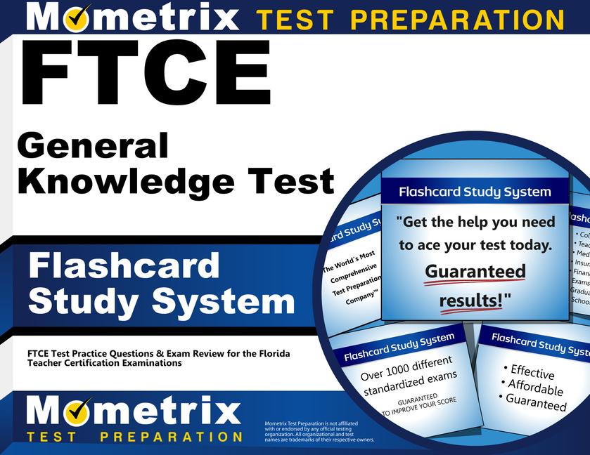 ***Ace Your Exam and Get the Results You Deserve*** Taking the Florida Teacher Certification Examinations is a challenge and your results can make a huge difference when it comes to your future. If you do well on the exam, it can open doors and lead to wonderful opportunities. If you do poorly on the exam, you will find yourself with fewer options. You may have to put your plans for the future on hold, or even give up on them altogether. Preparing for your exam with our FTCE General Knowledge Test Flashcard Study System can help you avoid this fate and give you a big advantage when you take the test. Thousands of satisfied customers have relied on Mometrix Flashcards to help them pass their exams, and now you can too. Mometrix Test Preparation is not affiliated with or endorsed by any official testing organization. All organizational and test names are trademarks of their respective owners. When you study with Mometrix FTCE flashcards, you'll get an in-depth review of each test section. Test sections include: * Reading * Writing * Mathematics ...and much more! We believe in delivering lots of value for your money, so our flashcard system is packed with the critical information you'll need to master in order to ace your FTCE exam. Our flashcards enable you to study small, digestible bits of information that are easy to learn and give you exposure to the different question types and concepts. With Mometrix flashcards, you'll be able to study anywhere, whenever you have a few free minutes of time. Study after study has shown that spaced repetition is the most effective form of learning, and nothing beats flashcards when it comes to making repetitive learning fun and fast. Using Mometrix flashcards for your FTCE review incorporates repetitive methods of study to teach you how to break apart and quickly solve difficult test questions. You also get online access to FTCE practice test questions, created by our Mometrix test prep team, to prepare you for what to expect on the actual exam. Each answer is explained in depth, in order to make the principles and reasoning behind it crystal clear. Many concepts include links to online review videos where you can watch our instructors break down the topics so the material can be quickly grasped. Examples are worked step-by-step so you see exactly what to do. Mometrix Test Preparation has helped thousands of people achieve their education goals. Our FTCE General Knowledge Test Flashcard Study System can help you get the results you deserve on your FTCE test too.
