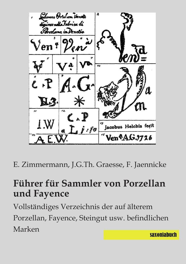 Führer für Sammler von Porzellan und Fayence (1919) als vollständiges Verzeichnis der auf älterem Porzellan, Fayence, Steingut usw. befindlichen Marken von J. G. Th. Graesse, Direktor der Münz und Porzellansammlung König Friedrich August II. von Sachsen und F. Jaennicke. Vollständig umgearbeitet und erweitert wird das Werk mit Belegen, Erläuterungen und Registern durch den Kunsthistoriker Ernst Zimmermann, Direktor der Staatlichen Porzellansammlung in Dresden.