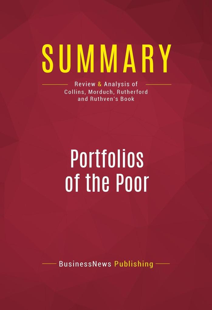 This complete summary of "Portfolios of the Poor" outlines the authors' assessment of how the world's poorest billion people find solutions to living on such a small income. They demonstrate that they are surprisingly resourceful and usually employ financial tools that are linked to informal networks and family ties. The book also offers a vision for the future generation of banks for the "bottom billion".