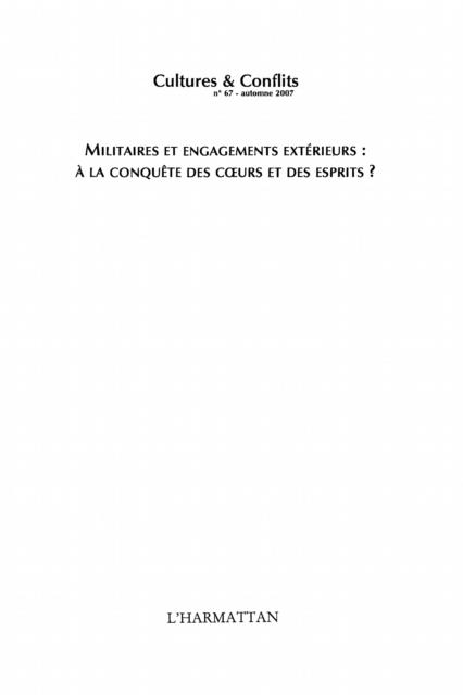 Ce numero se propose de modifier le regard porte sur les "e; nouvelles"e; missions militaires en operation exterieure (OPEX) en l'enrichissant de problematiques historiques, politiques et sociologiques. Quels sens revet la reference aux "e; coeurs et aux esprits des populations"e; si frequente dans cette litterature ? Quelles relations entretiennent les pratiques militaires en Opex avec la guerre ? Y a-t-il une metamorphose du guerrier ?