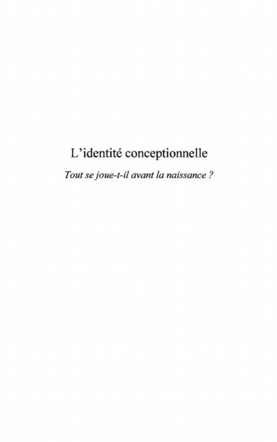 La conception et le deroulement de la grossesse marquent-ils le developpement psychologique de l'enfant ? L'auteur propose une lecture inedite de la conception humaine et de la periode prenatale. Il entend comprendre la place qu'occupent la conception et la periode prenatale dans le developpement mental de l'etre humain et envisage ainsi la grossesse comme une periode constitutive du developpement psychique de l'enfant a naitre. Au fil de sa recherche, il elabore notamment la notion d'"e; identite conceptionnelle"e; et pose un nouveau regard sur la gestation psychique.