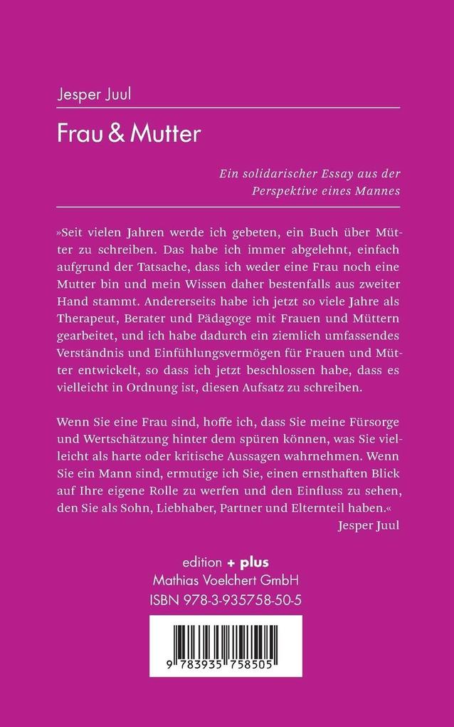 Wenn Sie eine Frau sind, hoffe ich, dass Sie meine Fürsorge und Wertschätzung hinter dem spüren können, was Sie vielleicht als harte oder kritische Aussagen wahrnehmen. Wenn Sie ein Mann sind, ermutige ich Sie, einen ernsthaften Blick auf Ihre eigene Rolle zu werfen und den Einfluss zu sehen, den Sie als Sohn, Liebhaber, Partner und Elternteil haben. « Jesper Juul