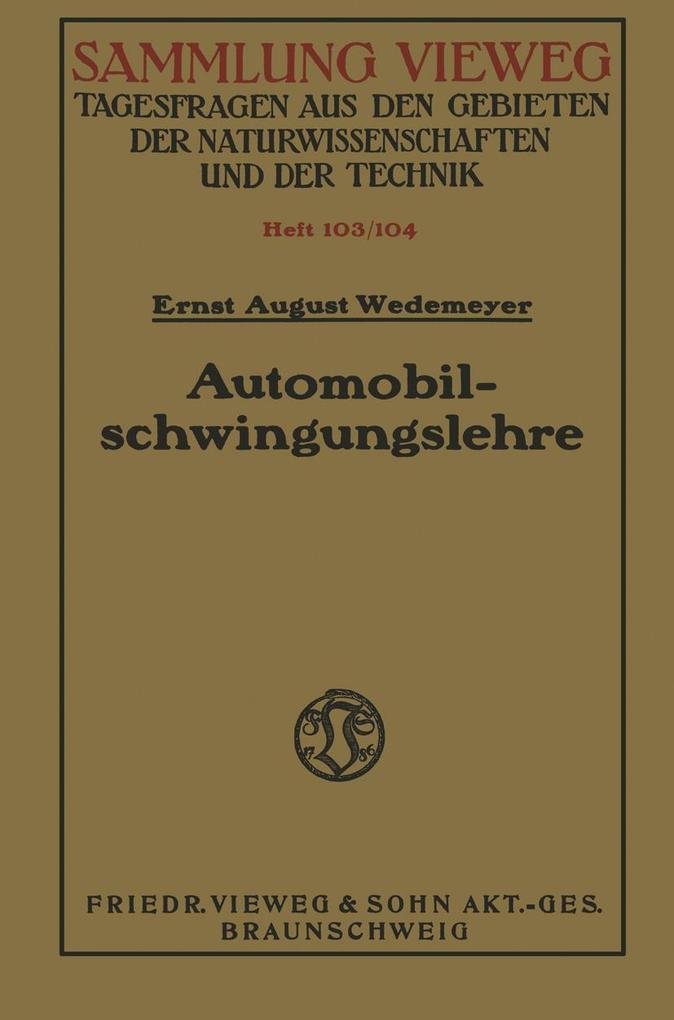 Inhaltsübersicht. - § 1. Schwingungstheorie. - Grundlagen. - Begriffe. - Grundgleichung. - Gekoppelter Schwinger. - Massenänderung. - Federänderung. - Übersetzung. - Sonderfälle. - Erregung. - Erzwungene Schwingung. - Gedämpfte Schwingungen. - § 2. Das Triebwerk. - Die Kurbelwelle. - § 3. Die Zündung. - § 4. Die Wärme. - § 5. Chassisschwingungen. - Nicken, Wanken, Wogen. - Torsionsschwingung. - Längsschwingung. - Querschwingung. - Drehschwingung des Wagens. - Fahrbequemlichkeit. - Fahrbahnerregung. - Stoß. - Triebwerkserregung. - Hochfrequente Chassisschwingungen. - Motorerregung. - Unbalancen. - Federung. - Schwingachsen. - Rahmenlose Bauart. - Pseudoharmonische Federn. - § 6. Dämpfung. - Reibungsdämpfung. - Geschwindigkeitsdämpfung. - Exponentialdämpfung. - Luftdämpfung. - Pseudoharmonische gedämpfte Feder. - Rasche Schwingungen. - §7. Geräusche. - Zahnräder. - Resonanzräume. - Trennfugen. - Triebwerk. - Klopfen. - Auspuff. - Sohneidentöne . . . - Reibschwingungen. - § 8. Radflattern. - Gegenmittel. - § 9. Fahrzeug und Fahrbahn. - Quellenangaben.