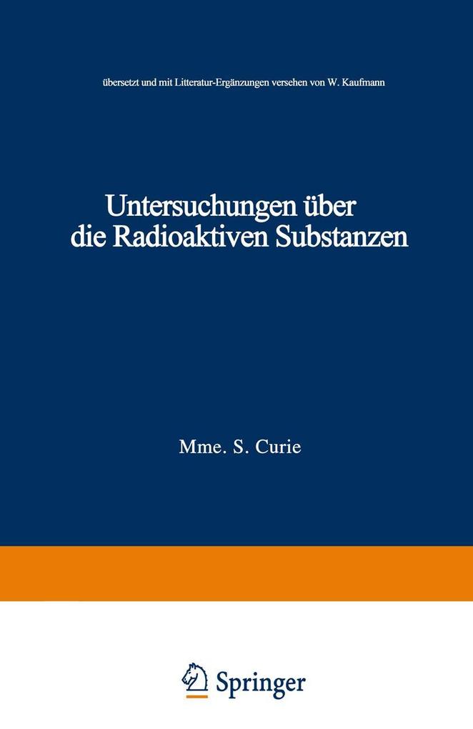 Inhaltsverzeichniss. - Erstes Kapitel. Radioaktivität des Urans und Thors. Radioaktive Mineralien. - Zweites Kapitel. Die neuen radioaktiven Substanzen. - Drittes Kapitel. Strahlung der neuen radioaktiven Substanzen. - Viertes Kapitel. Inducirte Radioaktivität. - Fünftes Kapitel. Natur und Ursache der Erscheinungen der Radioaktivität.