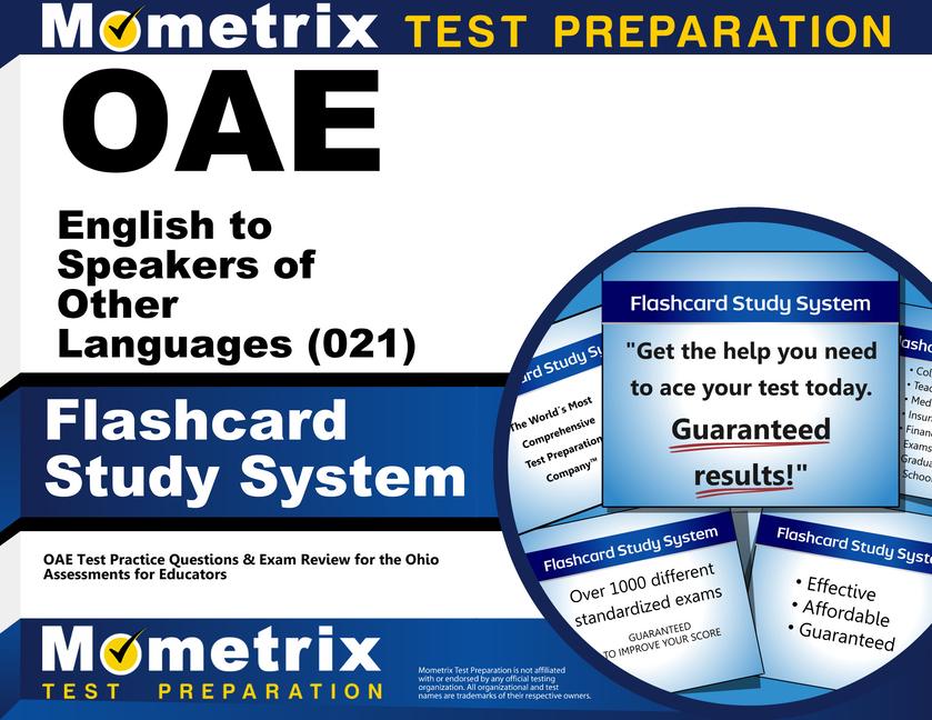 ***Ace Your Exam and Get the Results You Deserve*** Taking the Ohio Assessments for Educators is a challenge and your results can make a huge difference when it comes to your future. If you do well on the exam, it can open doors and lead to wonderful opportunities. If you do poorly on the exam, you will find yourself with fewer options. You may have to put your plans for the future on hold, or even give up on them altogether. Preparing for your exam with our OAE English to Speakers of Other Languages (021) Flashcard Study System can help you avoid this fate and give you a big advantage when you take the test. Thousands of satisfied customers have relied on Mometrix Flashcards to help them pass their exams, and now you can too. Mometrix Test Preparation is not affiliated with or endorsed by any official testing organization. All organizational and test names are trademarks of their respective owners. When you study with Mometrix OAE flashcards, you'll get an in-depth review of each test section. The Foundations of Language and Language Acquisition section includes: * Factors Affecting Language Development * Language Development Theories and Stages * Language Function, Variation, and Discourse * Morphology The Foundations of ESOL Instruction section includes: * Cultural Concepts and Perspectives * Diversity and Cross-Cultural Interaction * Family and Community Involvement * Inclusive and Safe Learning Environments The Instruction and Assessment of English Language Learners section includes: * Assessment * Classroom Resources * Effective Instructional Delivery * History of English Language Programs ...and much more! We believe in delivering lots of value for your money, so our flashcard system is packed with the critical information you'll need to master in order to ace your OAE exam. Our flashcards enable you to study small, digestible bits of information that are easy to learn and give you exposure to the different question types and concepts. With Mometrix flashcards, you'll be able to study anywhere, whenever you have a few free minutes of time. Study after study has shown that spaced repetition is the most effective form of learning, and nothing beats flashcards when it comes to making repetitive learning fun and fast. Using Mometrix flashcards for your OAE review incorporates repetitive methods of study to teach you how to break apart and quickly solve difficult test questions. You also get online access to OAE practice test questions, created by our Mometrix test prep team, to prepare you for what to expect on the actual exam. Each answer is explained in depth, in order to make the principles and reasoning behind it crystal clear. Mometrix Test Preparation has helped thousands of people achieve their education goals. Our OAE English to Speakers of Other Languages (021) Flashcard Study System can help you get the results you deserve on your OAE test too.