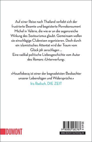 Der Erzähler Michel ist Beamter im Kultusministerium und nach Dienstschluss einsamer Peep-Show-Erotomane. Die Urlaubspauschalreise ins Traumland Thailand verspricht diesem "ziemlich mittelmäßigen Individuum" paradiesisches Glück und sexuelle Erlösung. Zusammen mit seiner Mitreisenden Valérie, in die er sich verliebt, erfindet er ein rettendes Programm für die Reisebranche: Wenn mehrere Hundert Millionen alles haben, bloß kein sexuelles Glück, und mehrere Milliarden nichts haben als ihren Körper, dann ist das "eine Situation des idealen Tauschs". Doch das Glück, nach dem Houellebecqs Erzähler Michel verzweifelt sucht, wird bei einem islamistischen Terroranschlag jäh zerstört.
