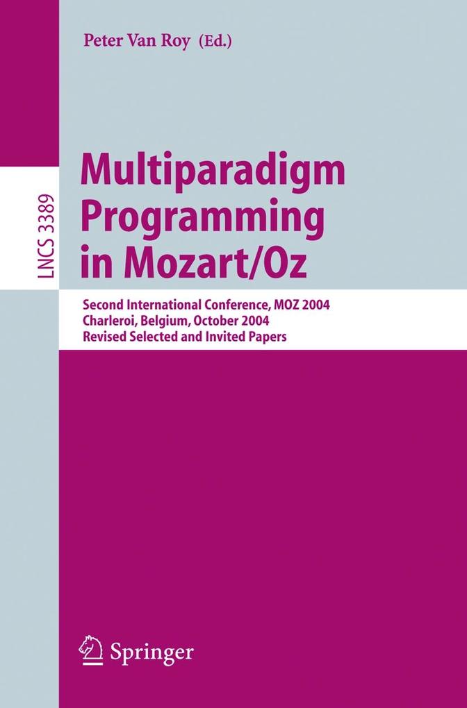 Keynote Talk. - The Development of Oz and Mozart. - Security. - The Structure of Authority: Why Security Is Not a Separable Concern. - The Oz-E Project: Design Guidelines for a Secure Multiparadigm Programming Language. - Computer Science Education. - A Program Verification System Based on Oz. - Higher Order Programming for Unordered Minds. - Software Engineering. - Compiling Formal Specifications to Oz Programs. - Deriving Acceptance Tests from Goal Requirements. - Human-Computer Interfaces and the Web. - Using Mozart for Visualizing Agent-Based Simulations. - Web Technologies for Mozart Applications. - Overcoming the Multiplicity of Languages and Technologies for Web-Based Development Using a Multi-paradigm Approach. - Distributed Programming. - P2PS: Peer-to-Peer Development Platform for Mozart. - Thread-Based Mobility in Oz. - A Fault Tolerant Abstraction for Transparent Distributed Programming. - Grammars and Natural Language. - The CURRENT Platform: Building Conversational Agents in Oz. - The Metagrammar Compiler: An NLP Application with a Multi-paradigm Architecture. - The XDG Grammar Development Kit. - Constraint Research. - Solving CSP Including a Universal Quantification. - Compositional Abstractions for Search Factories. - Implementing Semiring-Based Constraints Using Mozart. - A Mozart Implementation of CP(BioNet). - Constraint Applications. - Playing the Minesweeper with Constraints. - Using Constraint Programming for Reconfiguration of Electrical Power Distribution Networks. - Strasheela: Design and Usage of a Music Composition Environment Based on the Oz Programming Model. - Solving the Aircraft Sequencing Problem Using Concurrent Constraint Programming. - The Problem of Assigning Evaluators to the Articles Submitted in an Academic Event: A Practical Solution Incorporating Constraint Programming and Heuristics. - An Interactive Tool for the Controlled Execution of an Automated Timetabling Constraint Engine.