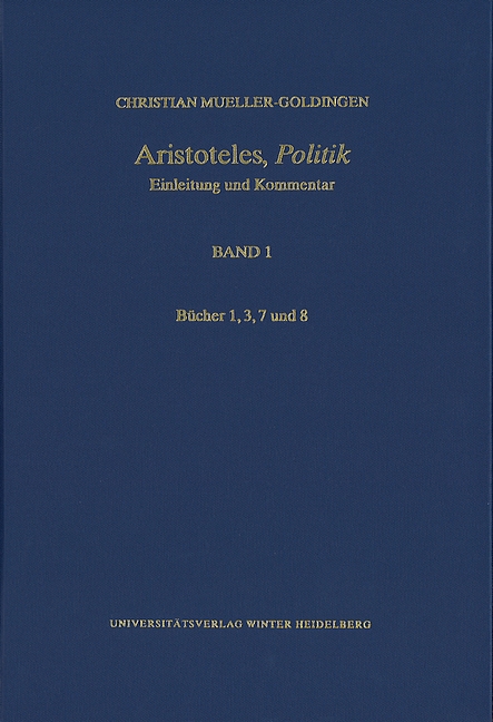 Aristoteles' 'Politik' ist der Gründungstext der Politologie. Von den insgesamt 8 Büchern behandelt der Kommentar die Bücher 1, 3 und 7, 8. Das 1. Buch ist nicht nur aufgrund seiner Systematik, sondern auch wegen der exzeptionellen Rolle der Ökonomie von Interesse. Aristoteles reflektiert die im damaligen Athen wie auch im übrigen Hellas immer größer werdende Bedeutung der Ökonomie. Die Bücher 3, 7 und 8 zeigen Aristoteles als Empiriker à la hauteur. Er unterlegt seine Analysen mit empirischer Forschung und seiner Sammlung von 158 Verfassungen. Die beiden letzten Bücher beinhalten Aristoteles' Idealstaat, der ebenfalls auf eine empirische Basis gestellt wird. Aristoteles orientiert sich in diesem Kontext an dem antiken Stararchitekten Hippodamos von Milet, dem Erbauer des Piräus und anderer Städte wie Tarent. Der Kommentar bezieht die volle Breite der sokratischen und vorsokratischen Philosophie ein. Aristoteles' 'Politik' ist ein überaus vernetzter Text, wie es von einem Philosophen wie ihm auch nicht anders zu erwarten ist.