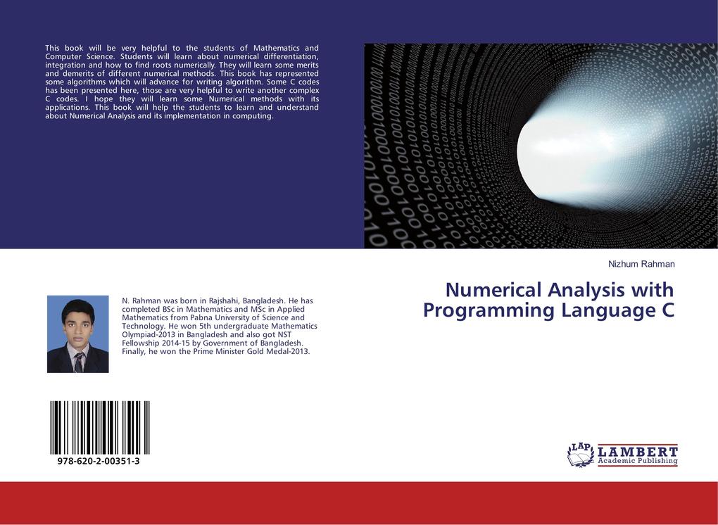 This book will be very helpful to the students of Mathematics and Computer Science. Students will learn about numerical differentiation, integration and how to find roots numerically. They will learn some merits and demerits of different numerical methods. This book has represented some algorithms which will advance for writing algorithm. Some C codes has been presented here, those are very helpful to write another complex C codes. I hope they will learn some Numerical methods with its applications. This book will help the students to learn and understand about Numerical Analysis and its implementation in computing.