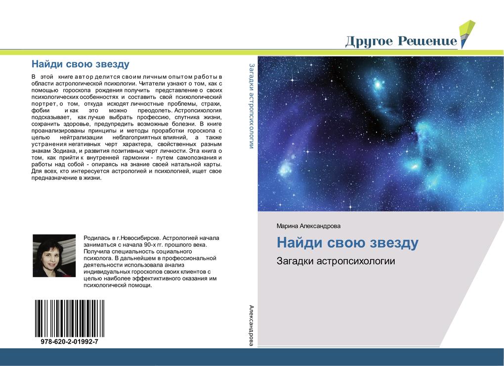V jetoj knige avtor delitsya cvoim lichnym opytom raboty v oblasti astrologicheskoj psihologii. Chitateli uznajut o tom, kak s pomoshh'ju goroskopa rozhdeniya poluchit' predstavlenie o svoih psihologicheskih osobennostyah i sostavit' svoj psihologicheskij portret, o tom, otkuda ishodyat lichnostnye problemy, strahi, fobii i kak jeto mozhno preodolet'. Astropsihologiya podskazyvaet, kak luchshe vybrat' professiju, sputnika zhizni, sohranit' zdorov'e, predupredit' vozmozhnye bolezni. V knige proanalizirovany principy i metody prorabotki goroskopa s cel'ju nejtralizacii neblagopriyatnyh vliyanij, a takzhe ustraneniya negativnyh chert haraktera, svojstvennyh raznym znakam Zodiaka, i razvitiya pozitivnyh chert lichnosti. Jeta kniga o tom, kak prijti k vnutrennej garmonii - putem samopoznaniya i raboty nad soboj - opirayas' na znanie svoej natal'noj karty. Dlya vseh, kto interesuetsya astrologiej i psihologiej, ishhet svoe prednaznachenie v zhizni.