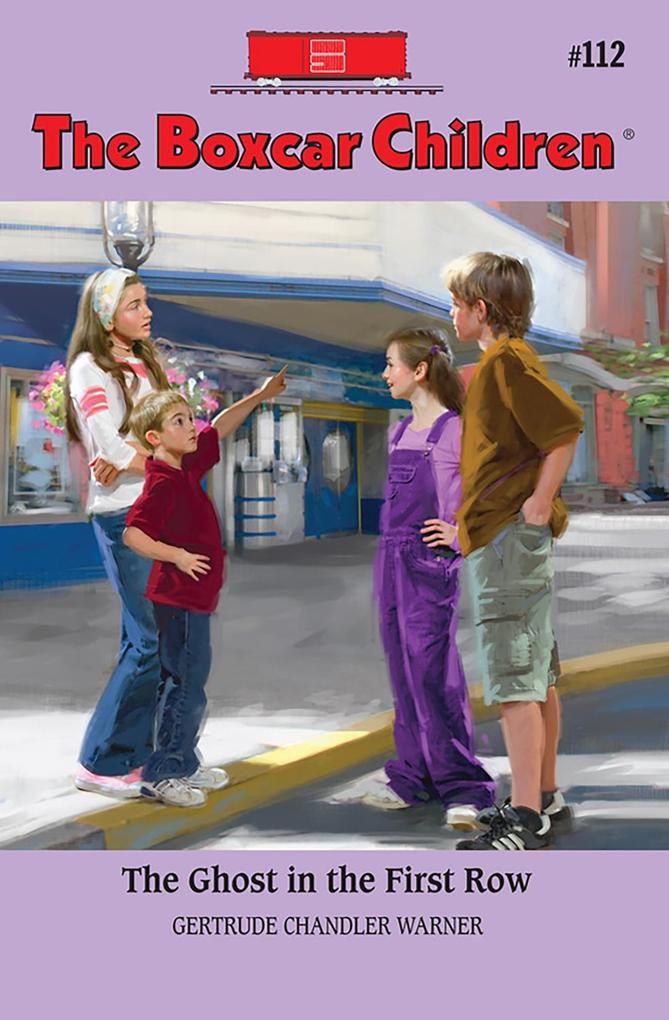 The Aldens are visiting Aunt Jane in Elmford where they will see a mystery play at the Trap-Door Theater. Each day at rehearsal something strange happens to the front-row seat once occupied by the theater's benefactor. Is the benefactor's ghost about?