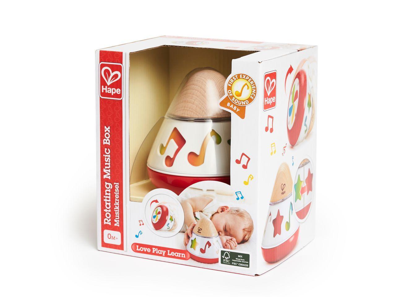 Beruhigende Klänge, bunte Farben und verschiedene Materialien. Der farbige Musikkreisel eignet sich hervorragend für Neugeborene und Kleinkinder.