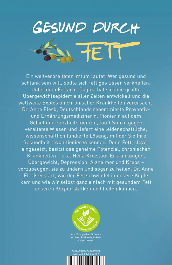 Der Titel des Buches klingt zunächst vielleicht provokant, schließlich lernen wir seit unserer Kindheit, dass man Fett meiden soll. Fett ist ungesund, macht dick und führt zu sämtlichen Erankungen. Hier allerdings plädiert Dr. med. Anne Fleck für mehr (gesundes) Fett in unserer Ernährung und stellt in ihrem Ratgeber die positiven Auswirkungen auf die Gesundheit dar, wenn man sich erst einmal an das Fett ran traut.