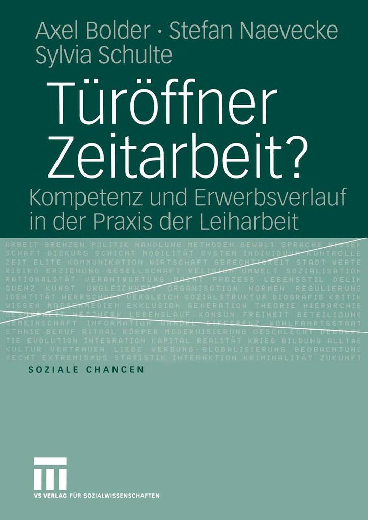 Vorwort des Herausgebers.- 1. Einleitung.- 2. Optionen der Untersuchung des Phänomens Leiharbeit: Das Forschungsdesign.- 2.1 Fragestellung und methodische Optionen.- 2.2 Exkurs aus gegebenem Anlaß.- 3. Das Interessendreieck: Entleiher Verleiher Zeitarbeitnehmer aus der Perspektive ihrer Experten.- 3.1 Das Dreiecksverhältnis - ein Rückblick.- 3.2 Die Arbeitgeberseite - aus doppelter Perspektive.- 3.3 Die Arbeitnehmerseite - aus der Perspektive der Gewerkschaften.- 3.4 Die vierte Seite des Dreiecks: Die Arbeitsverwaltung.- 3.5 Intermediäre Interesseninterpretation und Vertretung in der Politik der Zeitarbeit.- 4. Die Türöffner: Nachfrage und Angebot bei Entleihern und Verleihern.- 4.1 Die Nachfrage der Entleiher.- 4.2 Das Qualifikationsangebot der Verleiher.- 4.4 Tendenzen: Chancen für Kompetenzsicherung und Reintegration in kontinuierliche Beschäftigung.- 5. Lebenserfahrungen: Zeitarbeit im Urteil der Zeitarbeiter Die Bilanzen.- 5.1 Positive Bilanzen.- 5.2 Ambivalente Bilanzen.- 5.3 Negative Bilanzen.- 5.4 Extrem negative Bilanzen.- 5.5 Türöffiier-Funktion und Chancen für Kompetenzentwicklung im Urteil der Zeitarbeitskräfte.- 6. Zeitarbeit Chance für Kompetenzentwicklung und Türöffner in gesicherte Beschäftigung?.- Literatur.- Anhang: Auszug aus den Regeln für die Transkription der biographischen Interviews.