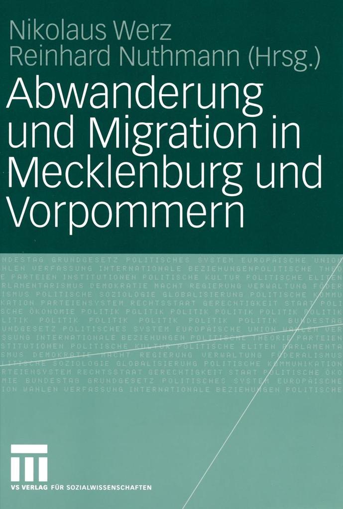Zur Geschichte der Migrationsforschung in Deutschland. - Mecklenburg und Vorpommern: Aus- und Einwanderung im 19. Jahrhundert. - Die Amerika-Auswanderung aus Mecklenburg-Strelitz im 19. Jahrhundert und ihre Wirkungen. - Landwirtschaft und ausländische Arbeitskräfte im Großherzogtum Mecklenburg-Schwerin zwischen 1850 und 1914. - Mecklenburgische Emigranten im 19. und 20. Jahrhundert. - Auswandererbriefe als Quelle für Historiker. - Fremdarbeit, Bevölkerungsgewinne und ausländische Besucher im 20. Jahrhundert. - Geistige Heimat Kirche: Zur Situation der Flüchtlinge und Vertriebenen in Mecklenburg-Vorpommern nach dem Zweiten Weltkrieg. - Bevölkerungsbilanz von Rostock im 20. Jahrhundert. - Ausländische Studierende in Mecklenburg und Vorpommern. - Auswanderung aus Mecklenburg als Gegenstand der Literatur. - Bevölkerungsentwicklung in Geschichte und Gegenwart. - Regional-Demographie Mecklenburg-Vorpommerns von 1945 bis 1990. - Die Auswirkungen der Migration auf die Bevölkerungsentwicklung Mecklenburg-Vorpommerns. - Migrationsgewinner und -verlierer: Mecklenburg-Vorpommern im Vergleich. - Besonderheiten im Wanderungsverhalten von Frauen und Männern in Sachsen-Anhalt. - Aktuelle Fragen der Migration und der demographischen Entwicklung. - Wandern und Wiederkommen? Humankapitalverlust und Rückkehrpotenzial für Mecklenburg-Vorpommern. - Migrationspolitik der Europäischen Union: Kompetenzen, Inhalte, Prognosen. - Zur Debatte über Zuwanderung und Integration in Deutschland Probleme und Perspektiven. - Akzeptanzprobleme der Migration in Mecklenburg-Vorpommern. - Die Autoren.