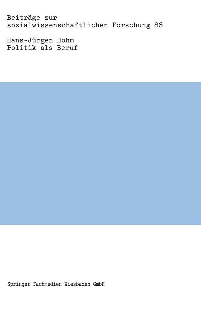 1. Einleitung.- 2. `Arbeit , `Beruf , `Profession . Eine Begriffsgeschichte.- 3. Max Weber als Klassiker der soziologischen Professionalisierungstheorie. Eine wissenschaftshistorische Thematisierung von `Politik als Profession .- 4. Aspekte einer soziologischen Professionalisierungstheorie der Politik.- Anmerkungen.