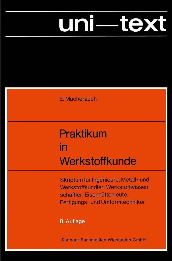 V 1 Strukturelle Beschreibung reiner Metalle. - V 2 Gitterstrukturbestimmung mit Röntgenstrahlen. - V 3 Gitterstörungen. - V 4 Schmelzen und Erstarren von Metallen und Legierungen. - V 5 Optische Metallspektroskopie. - V 6 Röntgenfluoreszenzanalyse. - V 7 Thermische Analyse. - V 8 Lichtmikroskopie von Werkstoffgefügen. - V 9 Härtemessung. - V 10 Kaltumformen durch Walzen. - V 11 Werkstofftexturen. - V 12 Korngrößenermittlung. - V 13 Erholung und Rekristallisation. - V 14 Elektrische Leitfähigkeit. - V 15 Metallographie unlegierter Stähle. - V 16 Martensitische Umwandlung. - V 17 Phasenanalyse mit Röntgenstrahlen. - V 18 Gefüge von Gußeisenwerkstoffen. - V 19 Quantitative Gefügeanalyse. - V 20 Transmissionselektronenmikroskopie von Werkstoffgefügen. - V 21 Gefügebewertung. - V 22 Topographie von Werkstoffoberflächen. - V 23 Kraftkontrolle und Nachgiebigkeit einer Zugprüfmaschine. - V 24 Messung elastischer Dehnung. - V 25 Grundtypen von Zugverfestigungskurven. - V 26 Temperatureinfluß auf die Streckgrenze. - V 27 Interferenzmikroskopie verformter Werkstoffoberflächen. - V 28 Statische Reckalterung. - V 29 Dynamische Reckalterung. - V 30 Bauschingereffekt. - V 31 Gußeisen unter Zug- und Druckbeanspruchung. - V 32 Dilatometrie. - V 33 Wärmespannungen und Abkühleigenspannungen. - V 34 Wärmebehandlung von Stählen. - V 35 ZTU-Schaubilder. - V 36 Härtbarkeit von Stählen. - V 37 Stahlvergütung und Vergütungsschaubilder. - V 38 Härte und Zugfestigkeit von Stählen. - V 39 Einsatzhärten. - V 40 Nitrieren. - V 41 Wärmebehandlung von Schnellarbeitsstählen. - V 42 Thermo-mechanische Stahlbehandlung. - V 43 Aushärtung einer AlCu-Legierung. - V 44 Formzahlbestimmung. - V 45 Zugverformungsverhalten von Kerbstäben. - V 46 Biegeverformung. - V 47 Spannungsoptik. - V 48 Kerbschlagbiegezähigkeit. - V49 Rasterelektronenmikroskopie. - V 50 Torsionsverformung. - V 51 Schubmodulbestimmung aus Torsionsschwingungen. - V 52 Elastische Moduln und Eigenfrequenzen. - V 53 Anelastische Dehnung und Dämpfung. - V 54 Rißzähigkeit. - V 55 Compliance angerissener Proben. - V 56 Kriechen. - V 57 Schwingfestigkeit. - V 58 Statistische Auswertung von Dauerschwingversuchen. - V 59 Dauerfestigkeitsschaubilder. - V 60 Kerbwirkung bei Schwingbeanspruchung. - V 61 Wechselverformung unlegierter Stähle. - V 62 Zyklisches Kriechen. - V 63 Verformung und Verfestigung bei Wechselbiegung. - V 64 Dehnungswöhlerkurven. - V 65 Strukturelle Zustandsänderung bei Schwingbeanspruchung. - V 66 Ausbreitung von Ermüdungsrissen. - V 67 Ermüdungsbruchflächen. - V 68 Verzunderung. - V 69 Elektrochemisches Verhalten unlegierter Stähle. - V 70 Stromdichte-Potential-Kurven. - V 71 Spannungsrißkorrosion. - V 72 Wasserstoffschädigung in Stahl. - V 73 Tiefziehfähigkeit von Stahlblechen. - V 74 r- und n-Werte von Feinblechen. - V 75 Ultraschallprüfung. - V 76 Magnetische und magnetinduktive Werkstoffprüfung. - V 77 Röntgenographische Eigenspannungsbestimmung. - V 78 Mechanische Eigenspannungsbestimmung. - V 79 Kugelstrahlen von Werkstoffoberflächen. - V 80 Grobstrukturuntersuchung mit Röntgenstrahlen. - V 81 Metallographische und mechanische Untersuchung von Schweißverbindungen. - V 82 Schweißnahtprüfung mit Röntgen- und ? -Strahlen. - V 83 Schadensfalluntersuchung. - V 84 Aufbau und Struktur von Polymerwerkstoffen. - V 85 Viskoses Verhalten von Polymerwerkstoffen. - V 86 Zugverformungsverhalten von Polymerwerkstoffen. - V 87 Zeitabhängiges Deformationsverhalten von Polymerwerkstoffen. - V 88 Schlagzähigkeit von Polymerwerkstoffen. - V 89 Glasfaserverstärkte Polymerwerkstoffe. - V 90 Wärmeleitvermögen von Schaumstoffen. - V 91Dämpfung metallischer und nichtmetallischer Werkstoffe. - V 92 Kornanalyse eines Quarzsandes. - V 93 Kenngrößen bentonitgebundener Formstoffe. - V 94 Temperatureinfluß auf die Druckfestigkeit von Formstoffen. - V 95 Festigkeitseigenschaften von Kernsanden. - V 96 Fehler bei Sandguß. - A 1 Charakteristische Kenngrößen einiger reiner Metalle. - Quellennachweis.