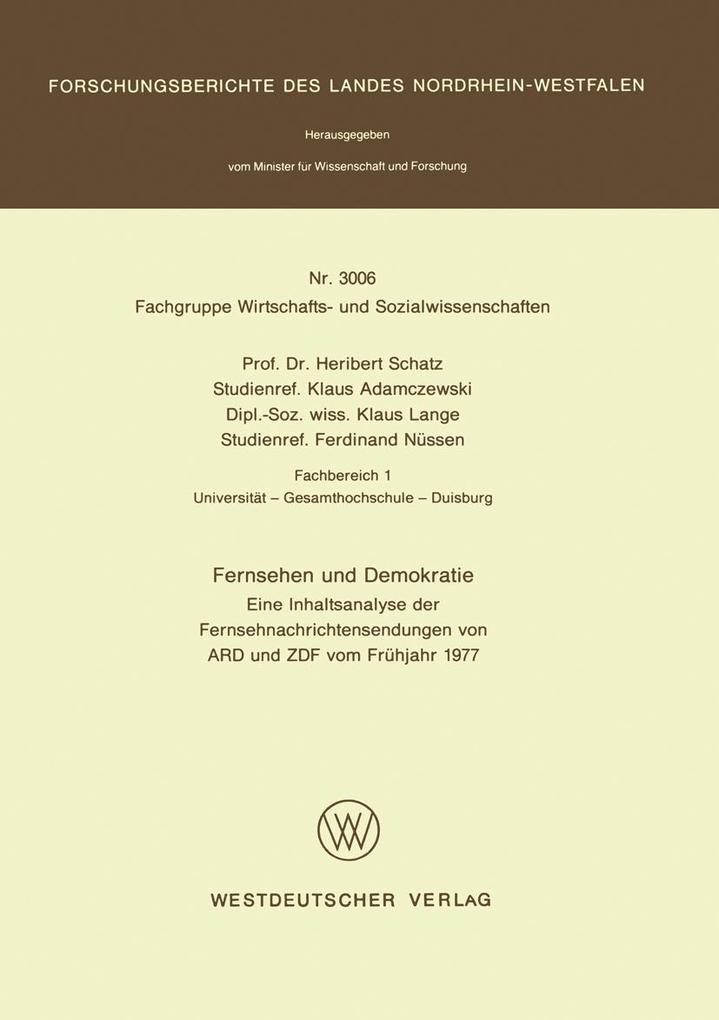 I. Vorbemerkung zur vorliegenden Untersuchung. - 1. Zielsetzung. - 2. Gegenstand und Durchführung der empirischen Untersuchung. - II. Zur demokratietheoretischen Konzeptualisierung des Fernsehens. - 1. Kritik strukturell-funktionalistischer Massenkommunikationsmodelle. - 2. Ein steuerungstheoretisches Alternativmodell. - III. Zur Methodik der Analyse von audio-visuellen Medien. - 1. Probleme der Rekonstruktion von Sinnstruktiven und Wertgehalten. - 2. Probleme der Analyse der optischen Komponente von audio-visuellen Medien. - 3. Das inhaltsanalytische Instrumentarium der vorliegenden Untersuchung. - IV. Die wichtigsten Ergebnisse der Untersuchung. - 1. Die Ergebnisse der Basisanalyse. - 2. Ausgewählte Ergebnisse der Film-Detailanalyse. - 3. Die wichtigsten Ergebnisse der semantischen Textanalyse. - 4. Zusammenfassung. - V. Anhang. - 1. Anmerkungsverzeichnis. - 2. Literaturverzeichnis. - 3. Protokollbogen und Vercoderanweisung.