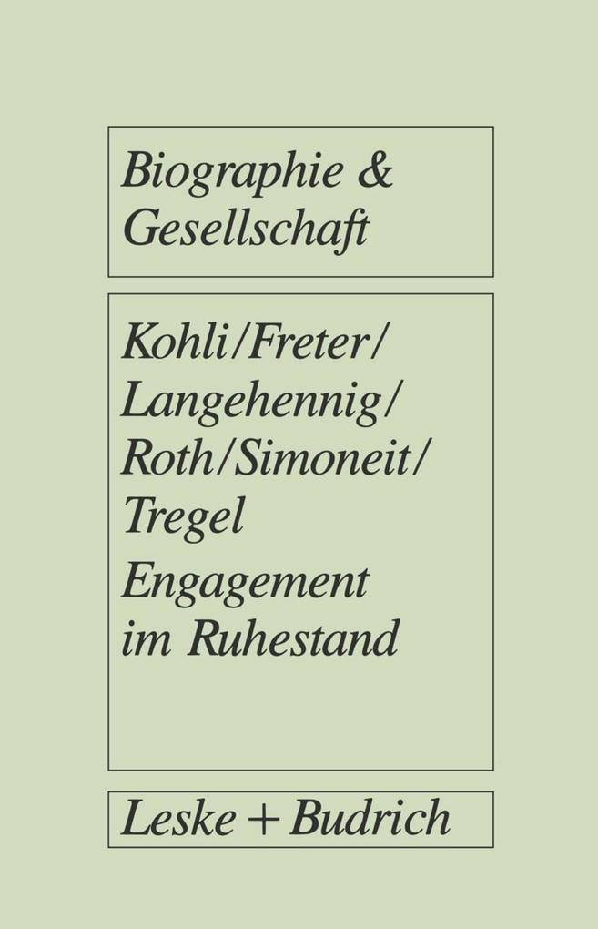 1 Fragestellung und theoretische Grundlagen.- 1.1 Das Problem: Altern in der Arbeitsgesellschaft.- 1.2 Aktivität als zentrales Konzept der Sozialgerontologie.- 1.3 Der Ruhestand als Teil der Normalbiographie.- 1.4 Vergesellschaftung durch Arbeit.- 1.5 Tätigkeitsformen im Vergleich.- 2 Methodischer Ansatz.- 2.1 Grundoptionen des Designs.- 2.2 Teilnehmende Beobachtung.- 2.3 Biographisch-narratives Interview.- 3 Vergesellschaftung durch Teilzeitarbeit.- 3.1 Teilzeitarbeit im Ruhestand und ihre Bedingungen.- 3.2 Datenerhebung und Stichprobe.- 3.3 Dimensionen der Vergesellschaftung durch Teilzeitarbeit.- 3.4 Falldarstellung: Herbert Laubach, Wachmann.- 4 Vergesellschaftung durch selbständige Arbeit.- 4.1 Selbständige Erwerbsarbeit im Ruhestand und ihre Bedingungen.- 4.2 Datenerhebung und Stichprobe.- 4.3 Dimensionen der Vergesellschaftung durch selbständige Arbeit.- 4.4 Zwei Falldarstellungen.- 5 Vergesellschaftung durch ehrenamtliche Tätigkeit im sozialen Bereich.- 5.1 Ehrenamtliche Tätigkeit im sozialen Bereich und ihre Bedingungen.- 5.2 Datenerhebung und Stichprobe.- 5.3 Dimensionen der Vergesellschaftung durch ehrenamtliche Tätigkeit.- 5.4 Falldarstellung: Hans Nück, Ausbilder und Sanitäter beim Arbeiter-Samariter-Bund.- 6 Vergesellschaftung durch selbstorganisierte politische Interessenvertretung.- 6.1 Selbstorganisierte politische Interessenvertretung im Ruhestand und ihre Bedingungen.- 6.2 Datenerhebung und Stichprobe.- 6.3 Dimensionen der Vergesellschaftung durch selbstorganisierte politische Interessenvertretung.- 6.4 Falldarstellung: Günther Tamm, Seniorenvertreter.- 7 Vergesellschaftung im Hobby-Bereich.- 7.1 Hobby-Tätigkeit und ihre Bedingungen.- 7.2 Datenerhebung und Stichprobe.- 7.3 Dimensionen der Vergesellschaftung durch Hobby-Tätigkeit.- 7.4Falldarstellung: Gustav Must, Ansichtskartensammler.- 8 Engagement im Ruhestand: Ein zusammenfassender Vergleich.- 8.1 Bedingungen des Zugangs.- 8.2 Dimensionen der Vergesellschaftung.- 8.3 Zur zukünftigen Entwicklung.- Literatur.