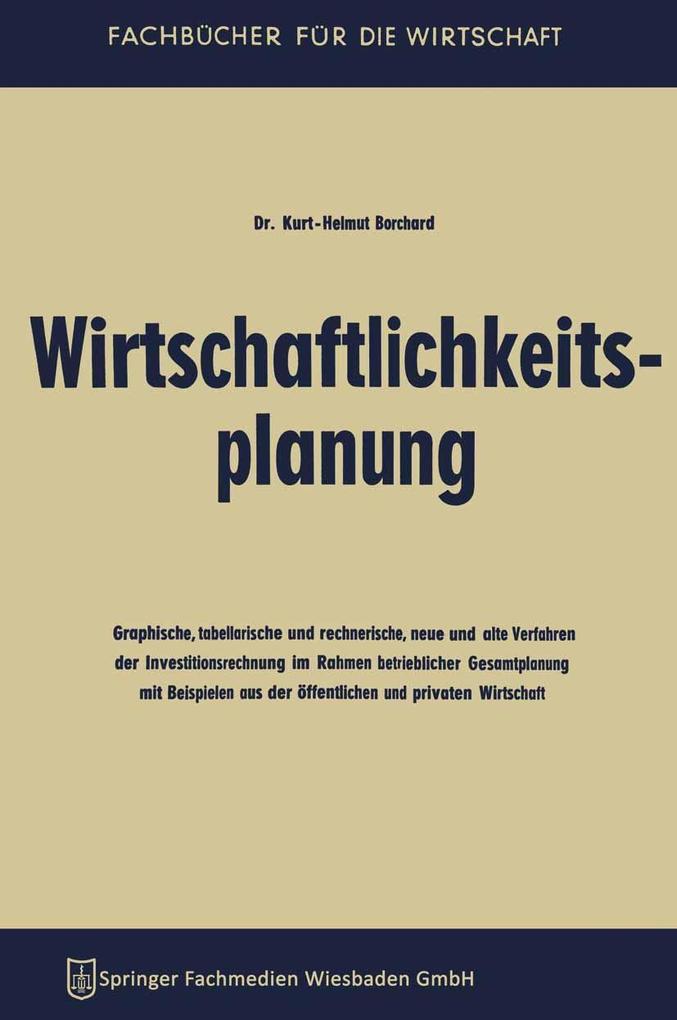 I. Planung ist notwendig.- II. Einführung in die Grundgedanken der Wirtschaftlichkeitsrechnung.- III. Neue und alte Verfahren der Wirtschaftlichkeitsrechnung.- IV. Anwendung der Investitionsrechnung.- V. Der Barwert veränderlicher Zahlungsströme.- VI. Planung und Überwachung von Investitionen.- VII. Investitionsrechnung im Rahmen betrieblicher Gesamtplanung.- VIII. Finanzmathematische Ableitungen.- IX. Anmerkungen.