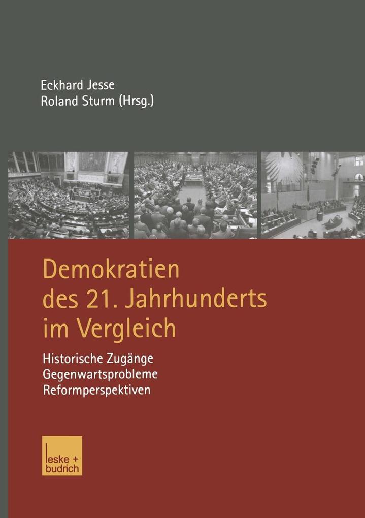 Zu diesem Band.- I.- Das Erbe des 20. Jahrhunderts.- II Die Verfasstheit demokratischer Gesellschaften.- Verfassung.- Regierungssysteme.- Rechtliche Ordnung.- Föderalismus und Regionalismus.- Kommunale Demokratie.- III Die Prägekräfte gesellschaftlicher Ordnungen.- Politische Kultur.- EIiten.- Verbände und Interessenpolitik.- Parteiensystem.- Wahlen.- Medien, öffentliche Meinung und Demoskopie.- Extremismus und politisch motivierte Gewalt.- IV Die Leistungsprofile und Leistungsfähigkeit moderner Demokratien.- Wirtschaftsordnung.- Sozialpolitik.- Umweltschutz.- Demokratieschutz.- V Eckhard Jesse/Roland Sturm.- Die Herausforderungen des 21. Jahrhunderts.- Autorenverzeichnis.