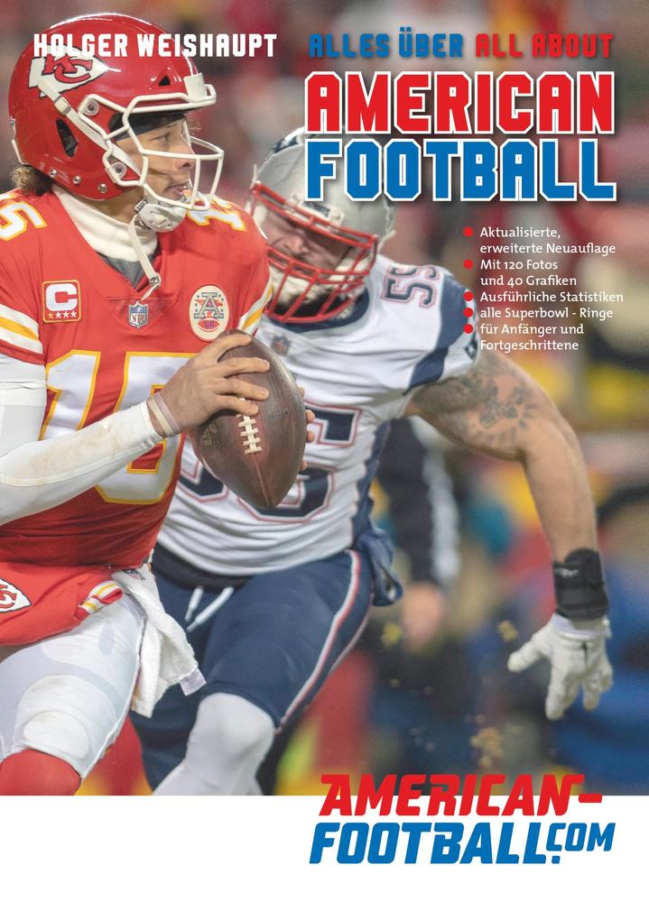 Alles über American Football jetzt in der aktualisierten und deutlich erweiterten Neuauflage: 320 Seiten + 120 Bilder + 40 Grafiken. Nach den vielen positiven Feedbacks zur ersten Ausgabe und über 40 Jahren American Football in Deutschland war es an der Zeit für diese aktualisierte und erweiterte Neuauflage. Mit über 30 Jahren persönlicher Erfahrung im American Football bieten wir viele nützliche Informationen, Tipps und Empfehlungen zu Ausrüstung, Filmen und Büchern sowie eine Liste aller Teams der NFL und GFL und die Verbände in Deutschland. Alles aus der Welt des American Footballs in diesem Buch ! Wie ist American Football in den USA entstanden und wie verlief die Entwicklung in Deutschland? Wir stellen dazu die wichtigsten Personen vor u. a. den Pionier des American Football in Deutschland und Gründer der Frankfurt Löwen, Alexander Sperber. Und wir präsentieren alle Super-Bowl-Sieger und MVPs sowie erstmals komplett alle Super-Bowl-Ringe. Dazu kommen Hintergrundinformationen zur Draft, zur Hall of Fame und die komplette Liste aller Hall-of-Fame-Mitglieder. Die wichtigsten American-Football-Regeln und -Fachbegriffe sowie alle Spielpositionen haben wir leicht verständlich erklärt. Dazu gehören auch die Schiedsrichterzeichen, welche wir erstmals übersichtlich sortiert erläutern. Damit macht das Zuschauen und vielleicht auch mitspielen gleich noch mehr Spaß. Für alle, die selbst spielen, geben wir Tipps zu Camps, Akademien und Organisationen, mit denen sie sich selbst immer weiter verbessern können. Jungen Talenten zeigen wir Wege, wie sie dann vielleicht sogar selbst einmal im College oder in der NFL spielen können. Ideal für Einsteiger und Fortgeschrittene !