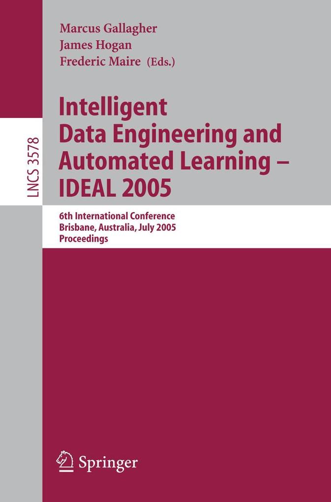 The ongoing success of the Intelligent Data Engineering and Automated Lea- ing (IDEAL) conference series re? ects the continuing need for intelligent - proaches to understanding relationships in the massive data sets which confront the modern researcher. FromitsoriginsinHongKongin1998, this focusupon thenatureofthe data hasbeenthe unifyingtheme oftheconference, allowingittobecomeakeyforum forresearcherstopresentnovelapproachestodataengineeringandlearning, and to provide a particularly valuable opportunity for cross-disciplinary exchange of ideasinemergingapplicationareas. Thisbreadthandcontinualevolutionmaybe seen in this year s programme, with sessions devoted to data mining and kno- edge engineering, bioinformatics, agent technologies and ? nancial engineering, together with the traditional focus on learning algorithms and systems. This volume in the Lecture Notes in Computer Science series contains - cepted papers presented at IDEAL 2005, held in Brisbane, Australia, during July 6 8, 2005. The conference received 167 submissions from throughout the world, which were subsequently refereed by the Programme Committee and - ditional reviewers. The vast majority of submissions received three independent reviews, and for some borderline submissions an additional, fourth review was commissioned prior to the decision being made. In the end, 76 papers were judged to be of su? cient quality for acceptance and inclusion in the proceedings, with a smaller set of these articles to be c- sidered for inclusion in planned special issues of a number of major journals continuing a practice from recent IDEAL conferences. At the time of writing, this arrangement had been con? rmed with the International Journal of Neural Systems, and discussions were well advanced with two other publications.