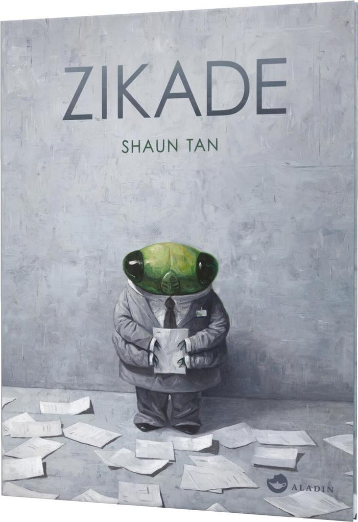 Zikade lebt in einer sehr grauen Welt. Er ist Büroangestellter, seit siebzehn Jahren schon. Sein Arbeitsplatz: Eine Bürozelle im Großraumbüro. Seine Wohnung: Eine Nische in der Mauerritze. Nie hat er auch nur einen einzigen Fehler gemacht, er war nie auch nur einen Tag lang krank. Dennoch wird Zikade mit Verachtung behandelt und von seinen menschlichen Kollegen schikaniert. Am letzten Tag vor dem Ruhestand kein Danke, kein Abschied. Zikade steigt eine Treppe hoch zum Dach des Gebäudes. Was dann passiert, ist unglaublich: Zikade schlüpft und heraus kommt ein leuchtendes Insekt, das nach Hause in den Urwald fliegt. Der Gedanke an die Menschen löst ein nie enden wollendes Lachen aus.