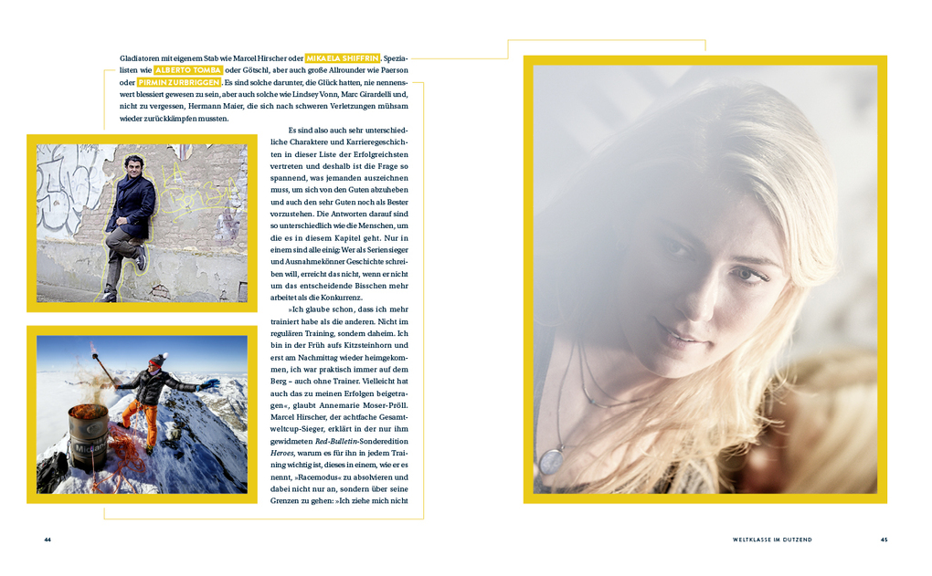 Das Buch ist durchgehend bebildert - unvergesslich das Foto, auf dem Franz Klammer 1976 in Innsbruck in diesem kanarienvogelgelben Rennanzug zu seiner Goldmedaille rast.