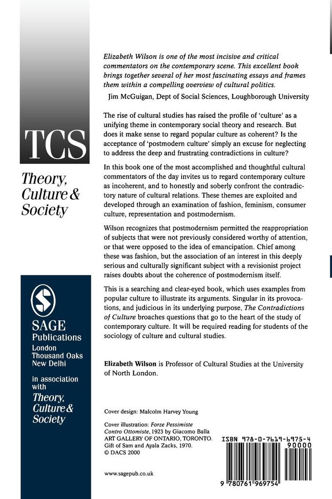 Elizabeth Wilson explores the contradictory nature of cultural relations through an examination of fashion, feminism, consumer culture, representation and postmodernism. Debates within feminism on the nature and effects of pornography are used to illustrate a particular kind of cultural contradiction.