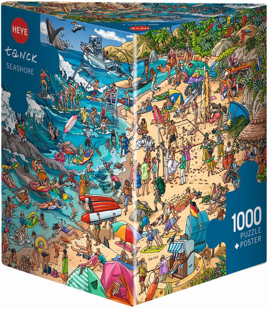 Egal, ob man sich in Birgit Tancks turbulenter Strandszene gemütlich in den Sand legt oder wagemutig in die Wellen stürzt - es ist immer was Unterhaltsames los!