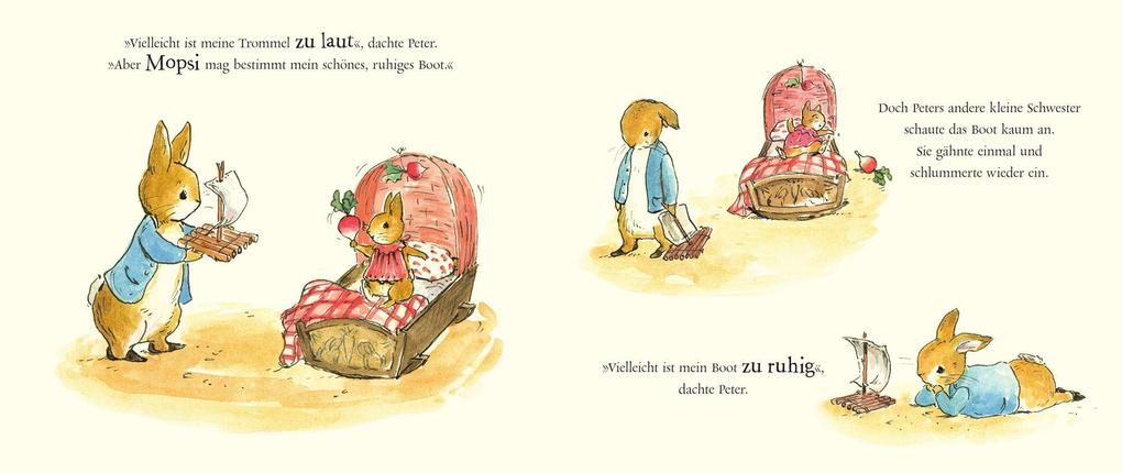 Hurra! Peter Hase hat gleich drei neue Geschwisterchen bekommen. Er freut sich schon sehr, denn sicher werden sie miteinander viel Spaß haben. Doch was Peter Hase auch mit den kleinen Babys spielen will, seine drei kleinen Geschwisterchen sind einfach noch zu klein. Aber mit ein bisschen Geduld geht auch diese Zeit vorbei. Und dann bekommen seine Geschwister gar nicht genug von ihrem großen Bruder. Ein fröhliches Pappbilderbuch für die ganze Familie