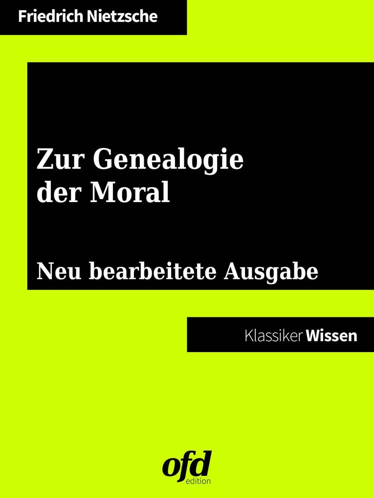 In dieser Abhandlung sucht Nietzsche nach dem Ursprung der Moral und kehrt dabei die Denkweise der abendländischen Moralphilosophie um: Für ihn ist diese Tradition vor allem ein Instrument mehr oder weniger subtiler Machtausübung. So ist die christlich-jüdische Moral eine letztlich aus Machtinteressen betriebene Umkehrung der antiken Vorstellung vom edlen und "guten" Herrenmenschen und der "schlechten" Plebs. Die christliche Tradition macht dagegen gerade die Unterdrückten zu den Guten und die Herrschenden zu den Bösen. Gerade in der heutigen Zeit, die durch eine Vielzahl von Opferdiskursen geprägt ist, bietet der in dieser Schrift von Nietzsche entwickelte Ressentiment-Begriff anregende Möglichkeiten für Argumentationsanalysen.