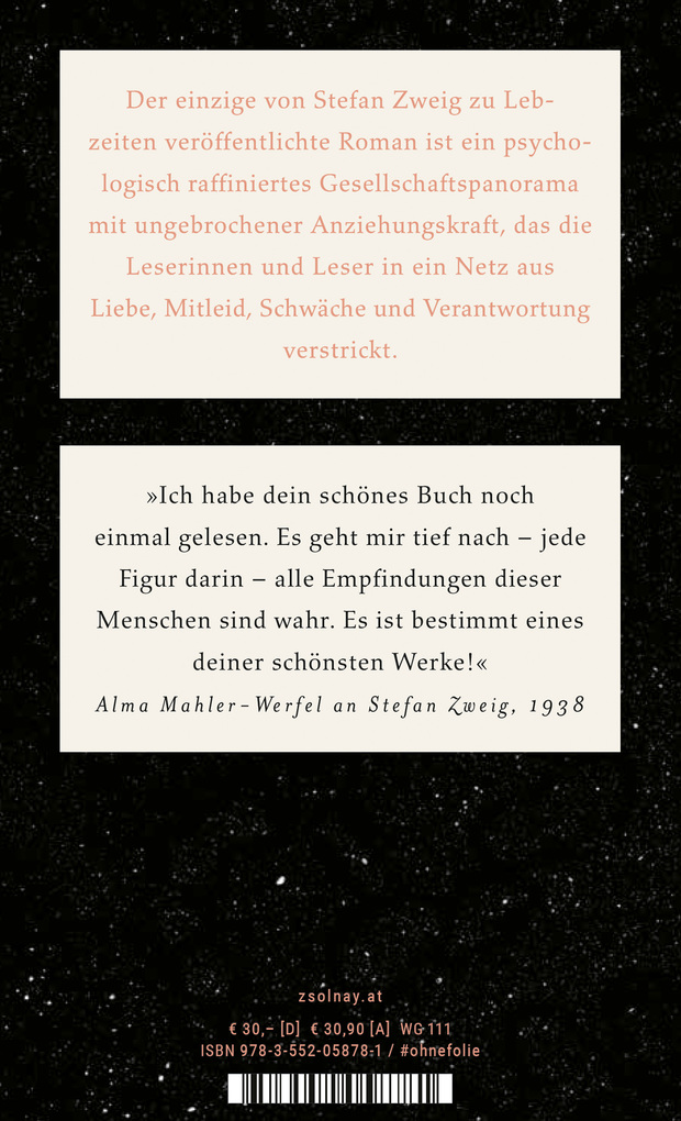 "Was an 'Ungeduld des Herzens' fasziniert, sind ganz und gar feine, fast freudianische Studien, die Zweig auf dem Höhepunkt seiner tiefenpsychologischen Kunst zeigen." Alfred Pfoser, WIener Zeitung, 16. 10. 21