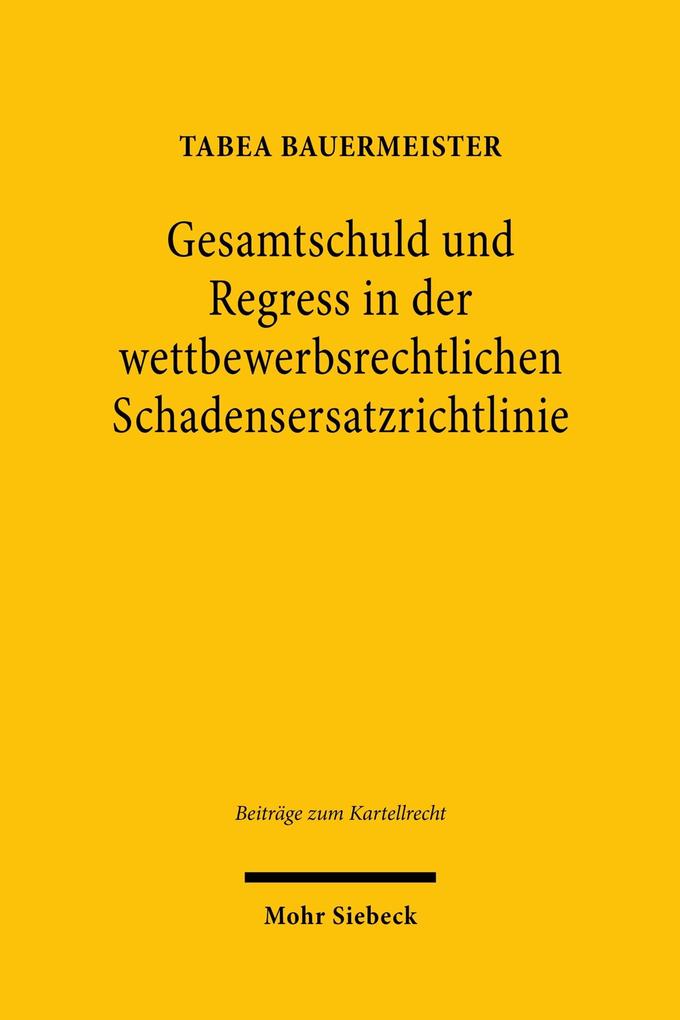 Die wettbewerbsrechtliche Schadensersatzrichtlinie hat in der Literatur viel Aufmerksamkeit erhalten. Vernachlässigt wurden indes die Regelungen zu Gesamtschuld und Regress. Und das obwohl - oder vielleicht gerade weil - die Richtlinie mit ihrem Art. 11 und Art. 19 in vielerlei Hinsicht rechtliches Neuland betritt: Zwar kannten die Mitgliedstaaten der Union bereits zuvor die gesamtschuldnerische Haftung und den anschließenden Innenausgleich mehrerer gemeinsamer Rechtsverletzer. Gänzlich neu sind jedoch Ausnahmeregelungen für Kronzeugen, KMU (kleine und mittlere Unternehmen) sowie im Anschluss an einen Vergleich. Tabea Bauermeister nimmt sich der Lücke an. Inwiefern wird das von der Richtlinie geregelte Haftungsregime für die Rechtsverletzung den Vorgaben des europäischen Unionsrechts und ihrer eigenen Zielsetzung gerecht? Die Autorin beleuchtet dazu die einzelnen Regelungen der Richtlinie zur Haftung mehrerer Rechtsverletzer sowie ihre Ausnahmen.