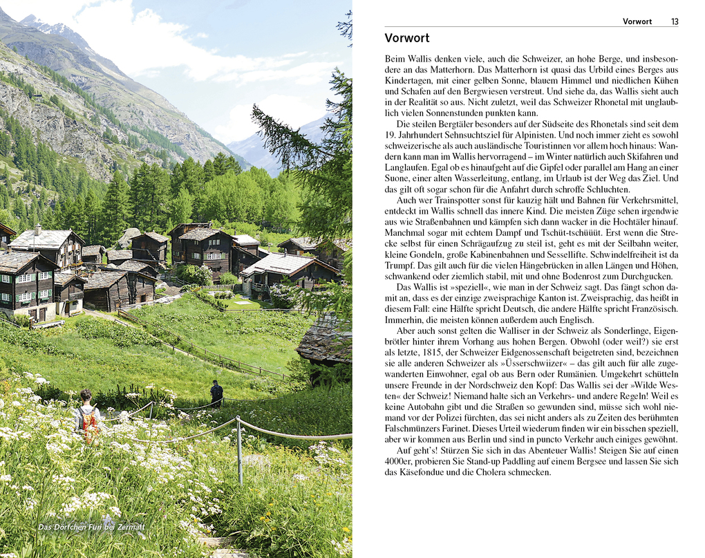 Der Trescher-Reiseführer WALLIS präsentiert auf 312 Seiten die schönsten Urlaubsregionen und die wichtigsten Sehenswürdigkeiten im Südschweizer Kanton. Für Aktivurlauber gibt es zahlreiche Vorschläge für Wandertouren, Klettersteige und Trottinette-Abfahrten. Wer es geruhsamer mag, kann die Berge per Bergbahn oder Lift erkunden und anhand detaillierter Beschreibungen wunderschöne Bergseen und alte Dörfer entdecken. Ausflüge führen nach Lausanne und Genf. Vom sonnigen Rhonetal mit der pittoresken Hauptstadt Sion bis zum Matterhorn, vom UNESCO-Welterbe Aletschgletscher bis zu den Palmen am Genfersee: Die Landschaft im Wallis ist besonders vielfältig. Der Reiseführer WALLIS stellt bekannte Urlaubsorte wie Zermatt, Crans-Montana oder Saas-Fee ebenso vor wie abgelegene Täler und Ortschaften. Viele Hintergrundinformationen und aktuelle praktische Reisetipps machen es leicht, das passende Reiseziel oder die beste Reiseroute im Wallis zu finden.>>> Weitere Reiseführer zu interessanten Regionen in den Alpen finden Sie auf der Website des Trescher Verlags.